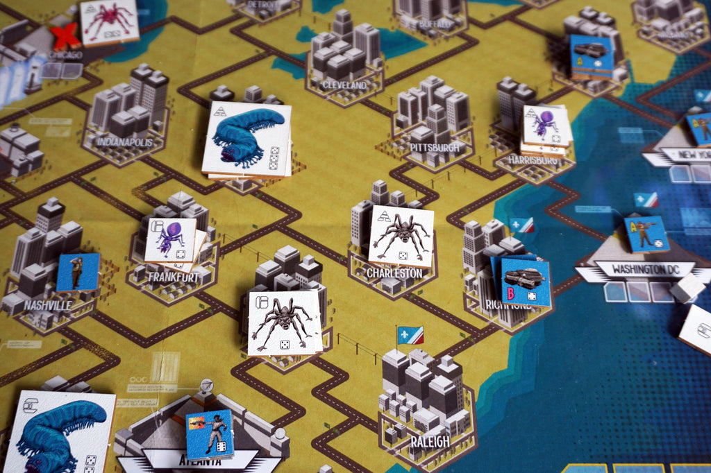Ginormopod 2050 A.D.: Attack of the Giant Bug Monsters de Ryan Heilman y Dave Shaw, y publicado por Hollandspiele, es un wargame con mecánicas de chit-pull en el que tienes que defender el país de un ataque alienígena.