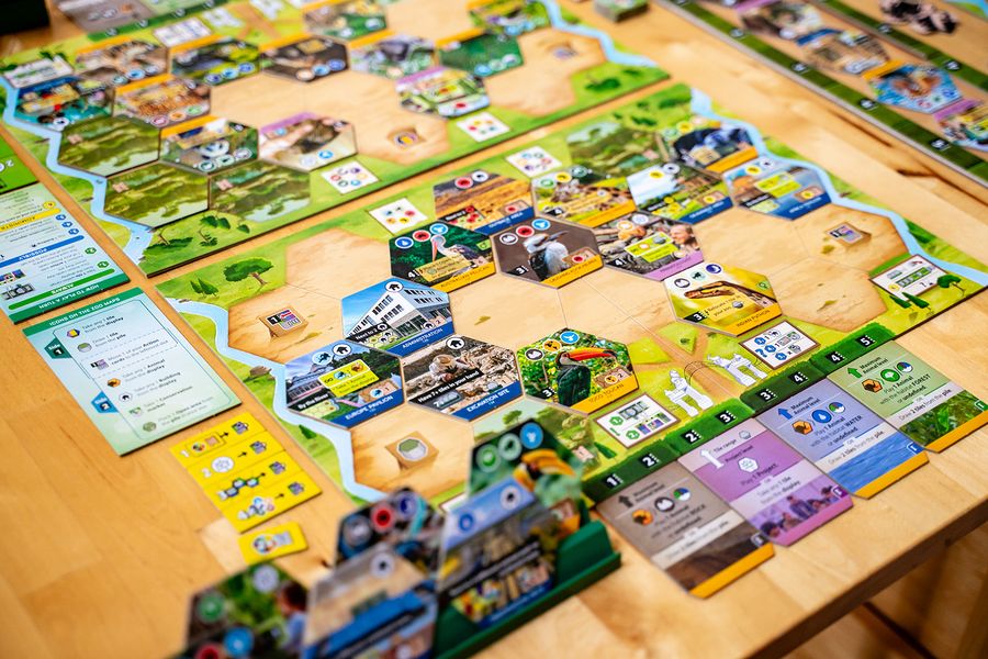 Un pequeño vistazo: El juego tiene muchas similitudes temáticas y conceptuales con Ark Nova, siendo la diferencia principal que se une el concepto de animales y recintos en un único elemento: las losetas hexagonales; además estas losetas incorporan restricciones de colocación y sinergias entre ellas.
